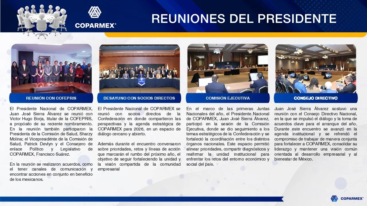 Informativo Semanal, el cual incluye información de lo más destacado de nuestro Centro Empresarial y de Coparmex Nacional.