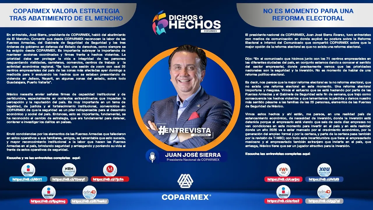 COPARMEX RECHAZA REFORMA ELECTORAL 2026; ADVIERTE RIESGOS PARA INVERSIÓN, T-MEC Y ESTABILIDAD DEMOCRÁTICA