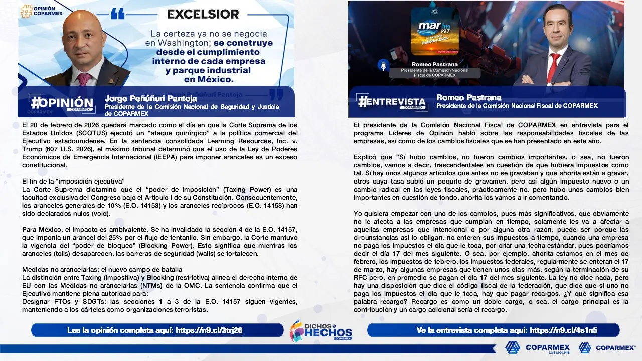 Informativo Semanal, el cual incluye información de lo más destacado de nuestro Centro Empresarial y de Coparmex Nacional.