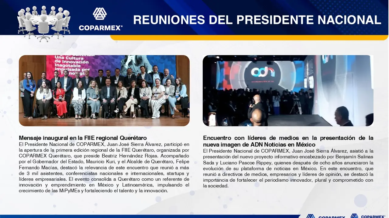 Informativo Semanal, el cual incluye información de lo más destacado de nuestro Centro Empresarial y de Coparmex Nacional.