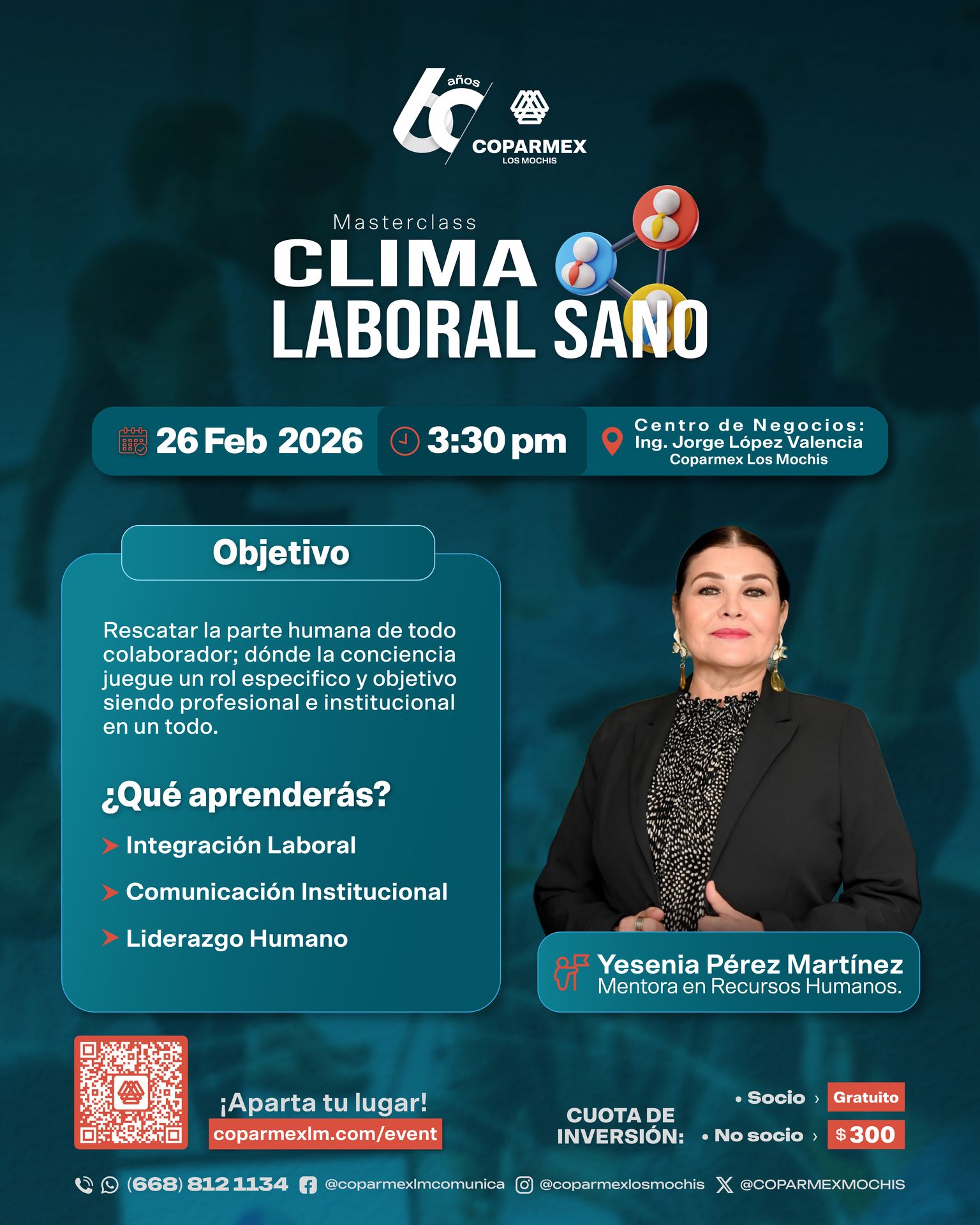 Especialista en cultura laboral y liderazgo humano, con amplia experiencia en la asesoría y capacitación de empresas en Sinaloa, Sonora y Baja California. Creadora de metodologías y modelos de gestión enfocados en el desarrollo del talento humano y el bienestar empresarial, además de conferencista en diversos organismos empresariales. Su enfoque se centra en fortalecer la conciencia, la comunicación y la integración laboral para construir organizaciones más humanas, profesionales e institucionales.